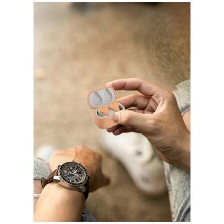 Wireless earbuds with ENC technology that eliminates external noise. The earbuds has 6 hours autonomy and features an automatic power-on function, that activates them as soon as they come out of the case. Additionally, the charging base is compatible with wireless chargers. The earbuds charges fully in 1 hour, and supports a Bluetooth® 5.0 connection distance up to 10 metres.