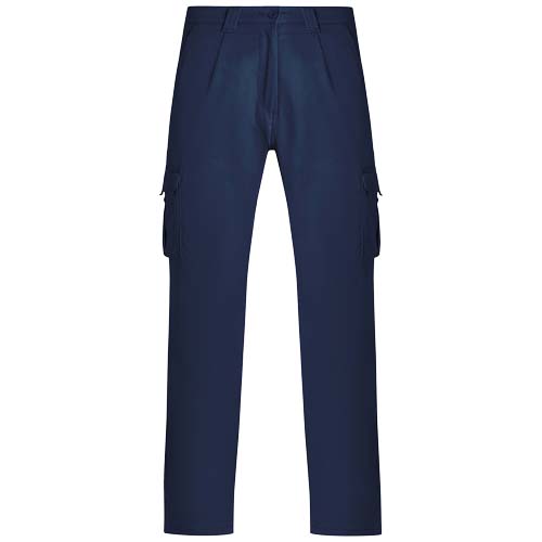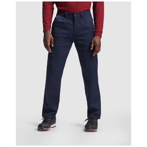 Long workwear trousers with elastane. Comfortable and adjustable fabric. Back adjustable elastic waist. Two front pockets. Two functional back pockets with flap and hook & loop fastening. Two functional side gusseted pockets with flap and hook & loop fastening. Contrasting seams.