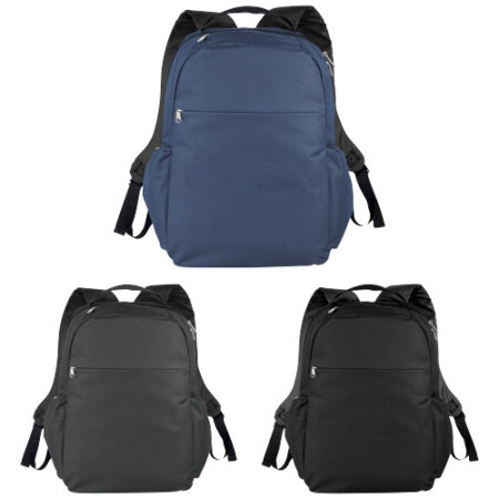 A sleek, 17″ laptop backpack with USB port and cable. Equipped with RFID protection in side pocket, additional zippered pockets and a trolley strap on the back. The top and front grab handles and padded shoulder straps make it easy to carry around. There may be minor variations in the colour of the actual product due to the nature of the fabric dyes, weaves, and printing.