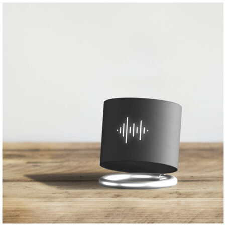 Wireless 3W light-up logo Bluetooth® speaker with antibacterial treatment. Double sound output for an unparalleled sound quality for a speaker this size. The ring speaker can be tilted to direct the sound in any direction. Has built-in microphone and conference call function. Capacity: 500 mAh – 3.7 V battery. Frequency: 50 Hz – 20 KHz. Sound output: 1 x 3 W. Impedance: 4 Ω. Bluetooth® 4.2. Net weight: 100 grams. Size: ∅ 50 mm x 45 mm. Delivered with a gift box with magnetic closure, made out of recycled paper.