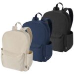 Made from GRS certified recycled water-repellent canvas with a colour-matched RPET lining, the Recanvas city backpack combines style with everyday practicality. It includes a padded 15.6" laptop compartment with an additional padded sleeve, a zipped front pocket, two side pockets, a breathable mesh back, and adjustable shoulder straps for comfort. With a 16-litre capacity, it is ideal for commuting, studying, or day-to-day use.