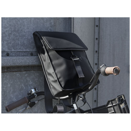 This modern, stylish cooler bag is perfect for your excursions. It is made of 50% recycled material from PET bottles. The inside can easily be wiped out and thick PEVA padding keeps the bag cold for a long time. With a touch fastener on the back of the bag, you can secure it to your bicycle handlebars. The bag also has an adjustable cover, ensuring optimal cold insulation every time.